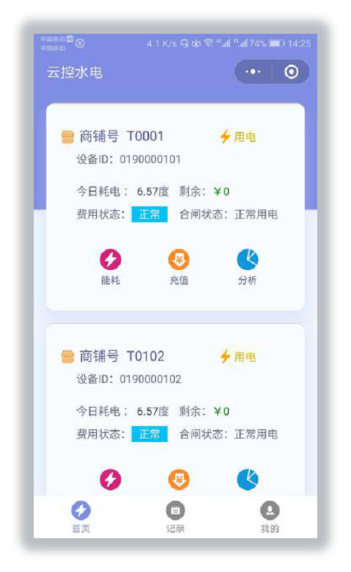 在線支付:商戶可以通過小程序或者微信公眾號實現在線自助充值水電費,也可以實時關注商鋪用水用況。