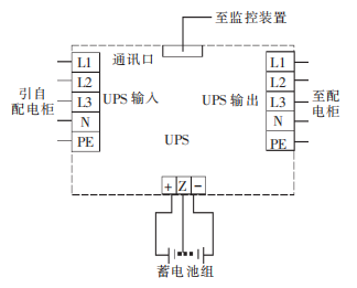 數據中心IDS 2000 供配電系統的供電電壓為 380 V 三相電,主要為所有弱電機柜內的設備、應急照明、區域中央控制指揮中心智能調度臺和其他智能化設施供電。在數據中心的列頭柜配置一體化配電集成柜,為空調、監控、UPS 和網絡設備供電。在行間中部配置 UPS 不間斷電源柜,當兩路輸入電源故障斷電時,機柜自動切換成 UPS 供電,保障設備不間斷持續工作。供配電系統接口圖如圖 2 所示。