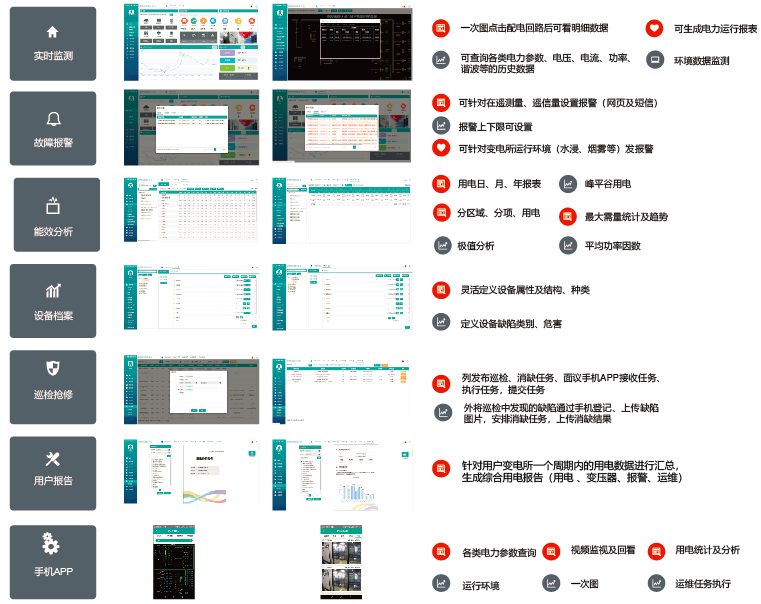 變電所運維云平臺采用多功能電力儀表、無線通信、邊緣計算網關及大數據分析技術,通過智能網關采集現場數據并存儲在本地,再定時向云平臺推送數據。平臺可同時接入數以千計的用戶變電站數據。平臺采集的數據包括變電所電氣參數和環境數據,包括電流電壓功率、開關狀態、變壓器溫度、環境溫濕度、浸水、煙霧、視頻、門禁等信息,有異常發生10S內通過短信和APP發出告警信號。平臺通過手機APP下發運維任務到指定人員手機上,并通過GPS跟蹤運維執行過程進行閉環,提高運維效率,即時發現運行缺陷并做消缺處理。